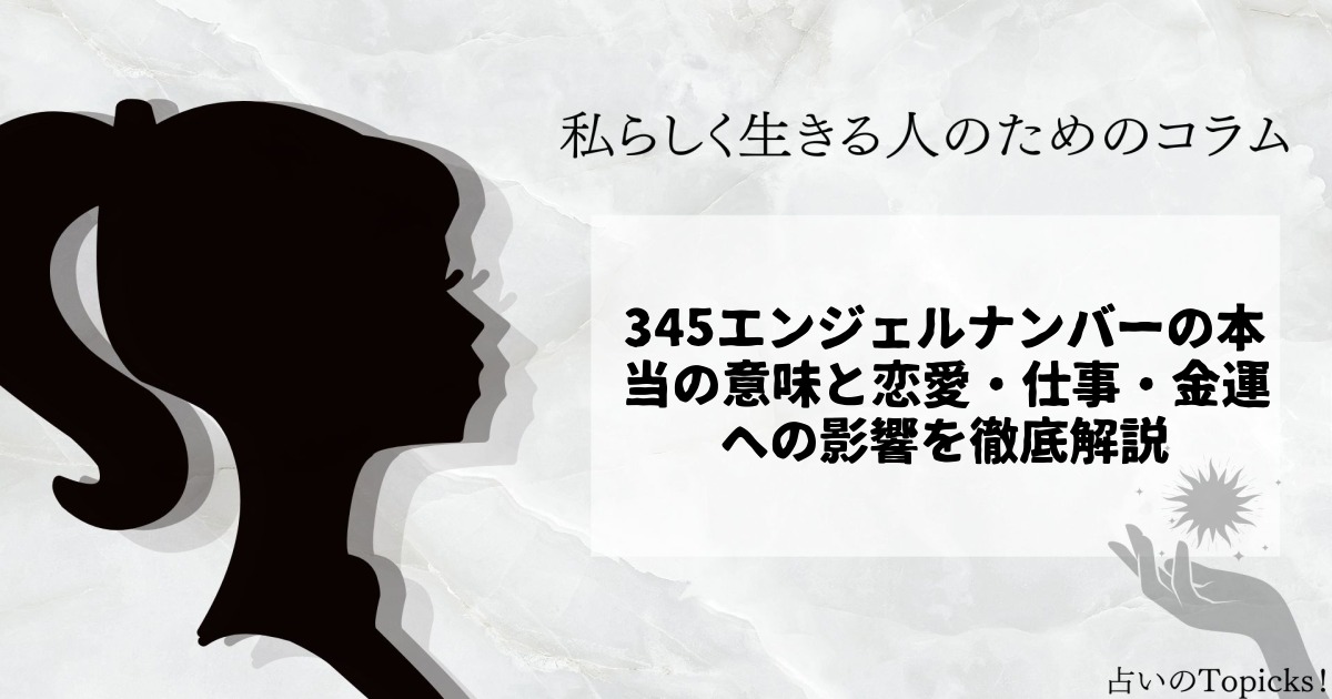 ふとした瞬間に「345」という数字を目にしたことはありませんか?それは偶然ではなく、天使や高次の存在からあなたへの重要なメッセージ、「345」かもしれません。本記事では、345エンジェルナンバーが持つ本質的な意味から、恋愛や金運、仕事、ツインレイとの関係まで、徹底的に解説します。人生を好転させるヒントを、実践的なアドバイスとともにお届けします。