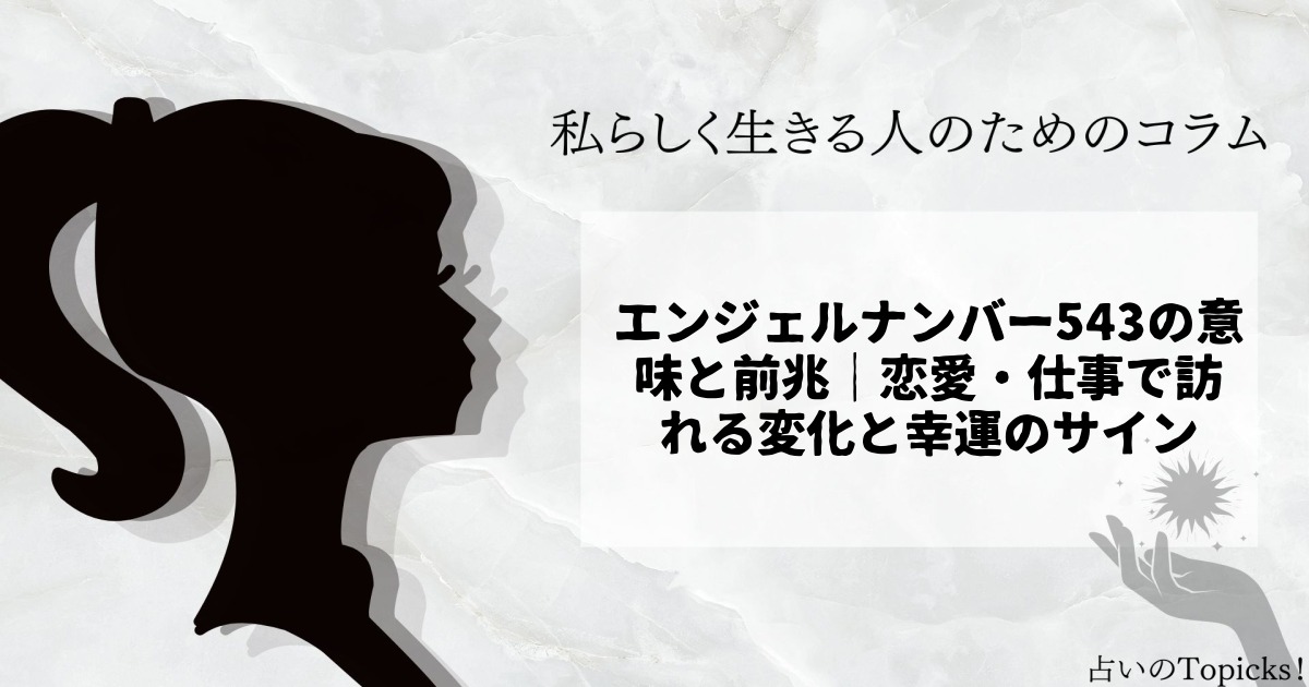 日常でふと目にする数字には、私たちに何かしらのサインが込められていることがあります。中でも「エンジェルナンバー543」は、今まさに人生の転機や変化の兆しが訪れていることを天使たちが優しく教えてくれる特別な数字。この記事ではエンジェルナンバー543の深い意味や前兆、恋愛・仕事・人間関係など各テーマごとに細かく解説し、見た時に実践したい具体的な行動までわかりやすくご紹介します。あなたの人生がより充実し、希望に満ちあふれるものとなるヒントがきっと見つかります。