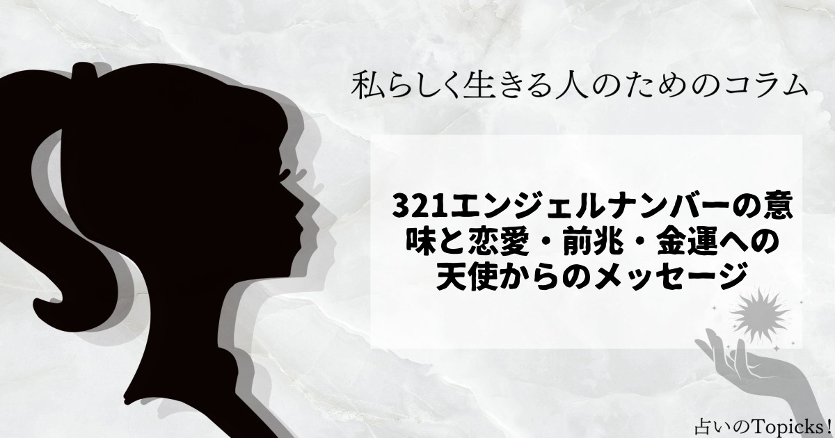 本記事では、エンジェルナンバー「321」の意味や前兆、恋愛・仕事・金運への影響、実践のポイントを徹底解説。あなたの人生に幸運を呼び込むためのヒントが満載です。天使たちのサインをしっかり受け止め、より良い未来に向けて活かしましょう。